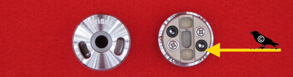 Am neuen A[rise] wurde gegenüber seinen Vorgängern die Luftführung und die Liquidzufuhr verändert und ist für SQuapes generell eine Neuerung. Wie bereits erwähnt, findet die Luftführung wieder von unten statt, wie wir es von den SQuape’s R und E[motions] kennen. Diese aber wird durch die Air Discs gesteuert. Die Luft wird von den seitlichen Schlitzen angezogen und führt dann durch die Luftführung von unten an die Coil.